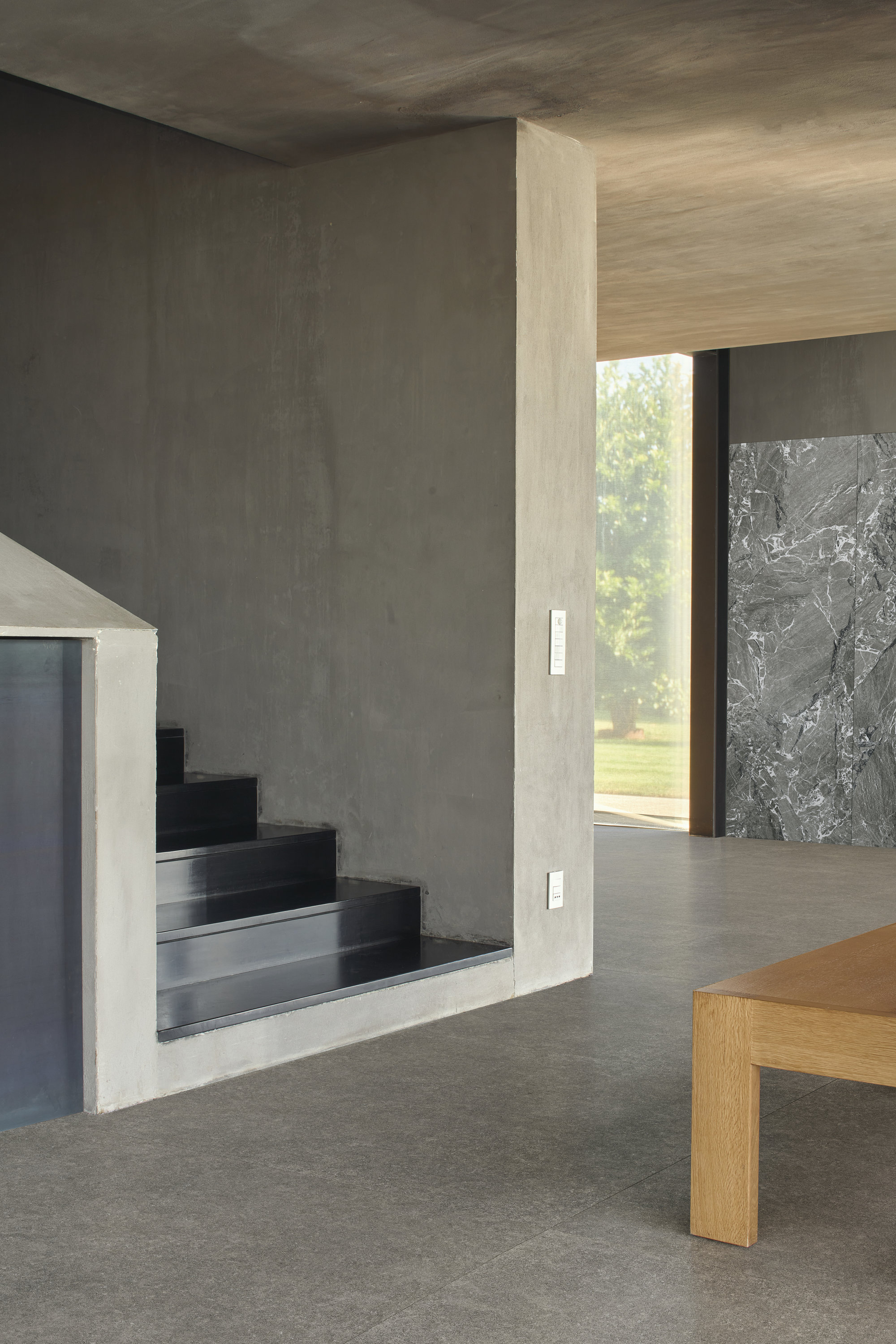 Gris profundo, enriquecido con matices azulados y una textura compacta que recuerda a las rocas metamórficas. Roche Bleue es una superficie densa y estructural, que transmite solidez y rigor. Su neutralidad cromática, enriquecida con ligeras variaciones minerales, la convierte en un fondo ideal para proyectos contemporáneos, capaz de dialogar tanto con tonos cálidos como fríos. Disponible en cerámica de 8 mm con acabados Natural y Natural Plus, y en espesor de 20 mm con Antislip, Roche Bleue amplía su funcionalidad también a los espacios exteriores.