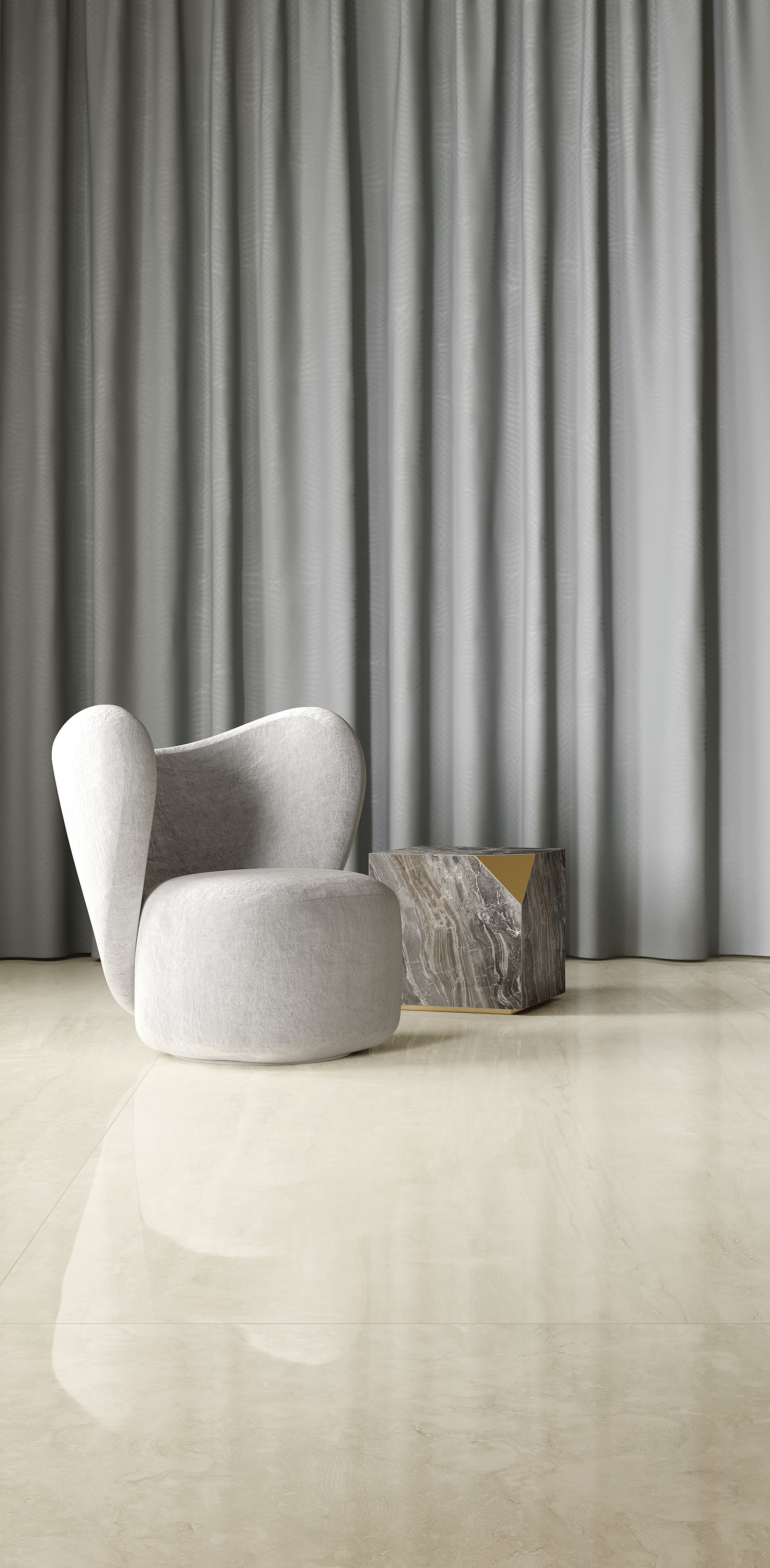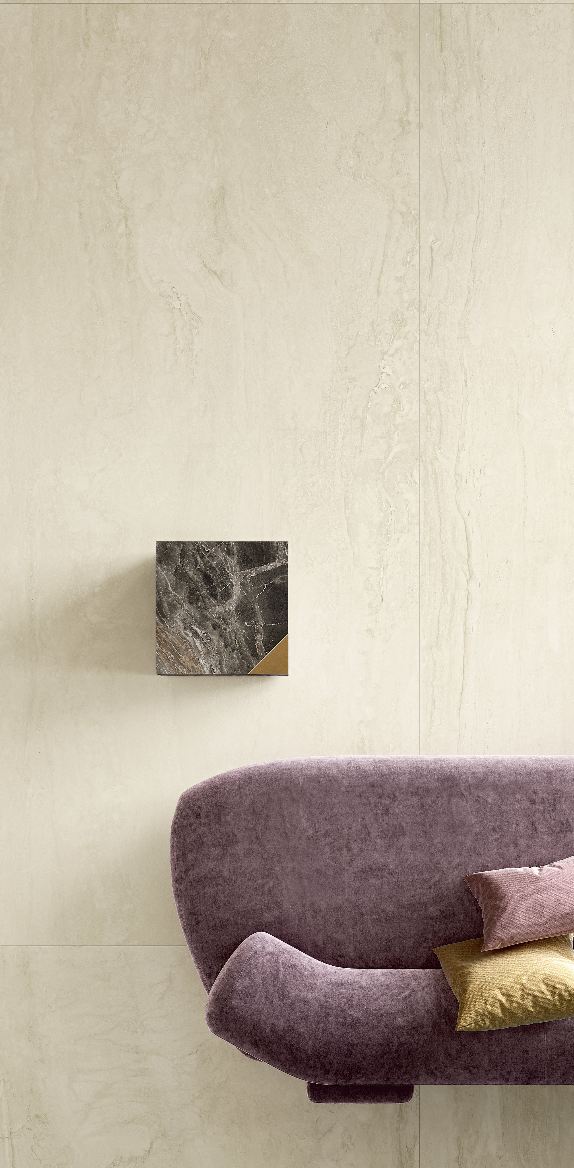 Ethereal Travertino Maximum se caracteriza por un tono marfil recorrido por delicadas vetas. El acabado pulido de Ethereal Travertino resalta especialmente la suave textura nubosa de la superficie. Versátil en su aplicación para proyectos de estilo clásico o contemporáneo, Ethereal Travertino se confirma como una elección de elegancia atemporal, aportando luminosidad y calidez a los espacios. Es ideal para aplicaciones conocidas como suelos y revestimientos interiores, fachadas exteriores, así como para revestir elementos de mobiliario.