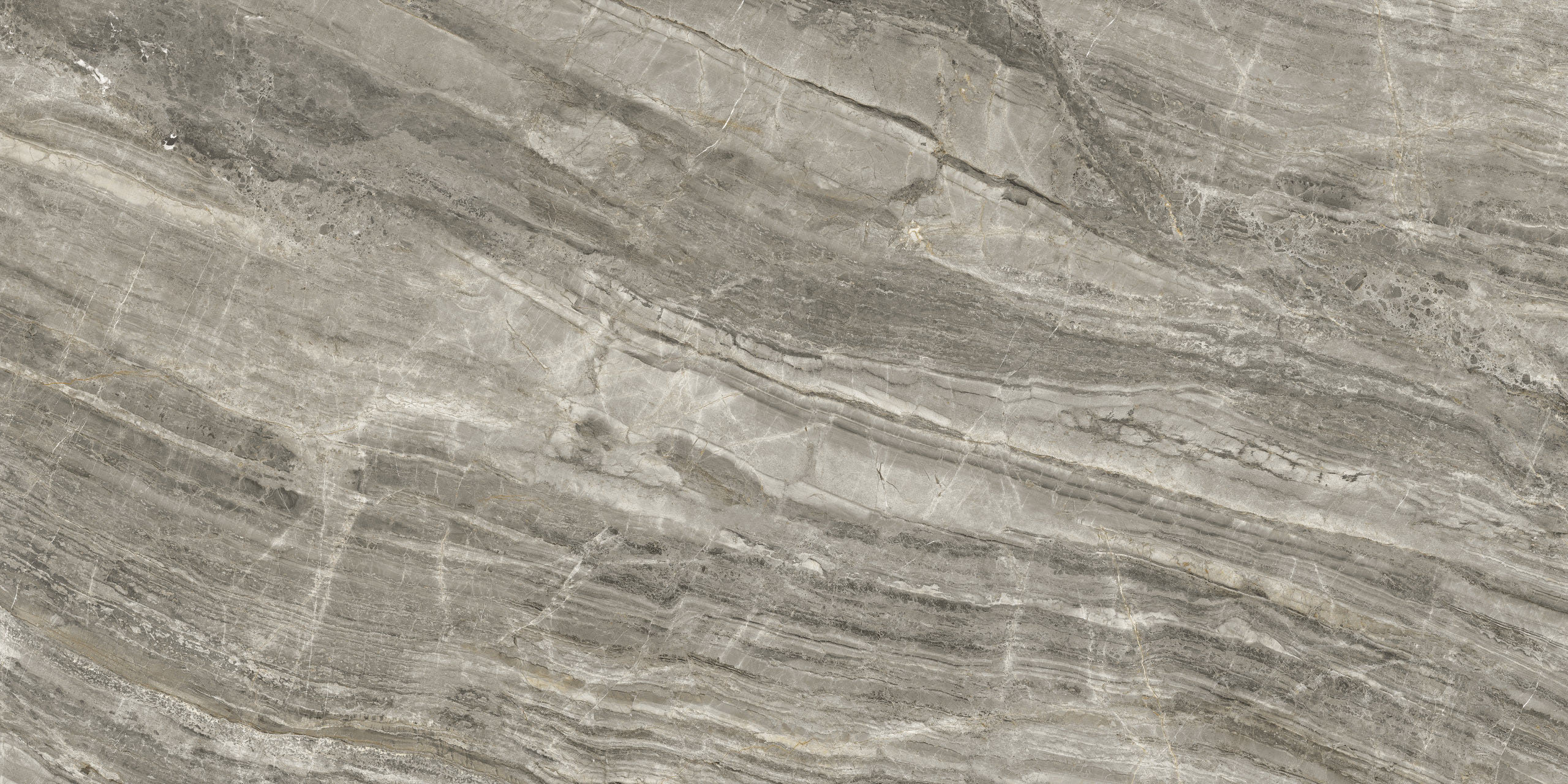 El greige, presentado en todas las gradaciones posibles en una sucesión armoniosa de vetas y estrías, es el tono dominante de Nebula Grigia Maximum. Tanto en el acabado semi-opaco Silky como en el acabado brillante Polished, mantiene siempre un aspecto pétreo. Una superficie de gran personalidad y vigor, ideal para vestir y revestir espacios.